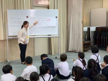 ゲストティーチャーとして3年生の保護者の方をお迎えし、各クラスで考えた歌に手話をつけて実際に保護者の方に見ていただきました。