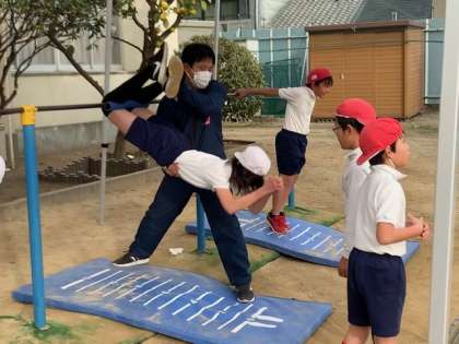 技が決まったときの子どもたちの笑顔がとっても印象に残る、心温まる授業でした。