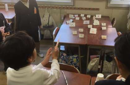 今日はみんなで考えたお店に、たくさんのお客さんが寄ってくれました。遊びの内容も充実していて大いに楽しめたようです。遊んでいる間にも、高学年の子が低学年の子の手をやさしく引き、いろいろなお店をめぐりました。いっしょに遊んでくれた低学年の子どもたちは本当にうれしそうでした。