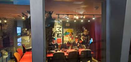 写真は上から、ガソリンスタンド・消防署・ラジオ局での様子です。