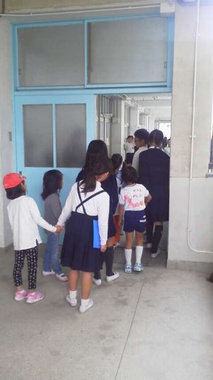 6年生児童が就学予定の子どもをエスコートして健康診断会場を回りました。役目を終えた6年生に聞くと「とても緊張したけれど、小さい子の面倒を見れてよかった」「楽しかった」との感想が返ってきました。6年生にとっても大切な経験になりました。