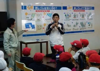 11月6日と7日に分かれて3年生はシード株式会社の工場に見学に行きました。シードの工場では、消しゴムを生産しています。工場の方からお話や見学上の注意を聞き、グループに分かれ見学しました。工場の方がグループに一人ついてくださり、案内と説明をしてくださいました。消しゴムが出来上がるまでの様子、工場の設備や工夫について学習することができました。