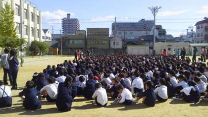 まず、担当者が分団の番号を示し、子どもたちは学年ごとに分団に分かれます。予定の時間内にスムーズに訓練することができました。(子どもたちは自分の分団番号を忘れないよう名札の裏に分団名を記入することになっています。ご家庭でもいざという時に備え、お子様の分団番号を覚えておいてください。)