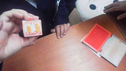 このスタンプカードのスタンプは代表委員会児童が手作りしたもので、全て押してもらうと「いつも元気MAXえがおだらけの高くら小学こう」という今年の児童会のめあてになるように工夫されていました!