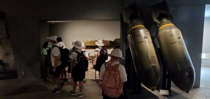 上が防空壕の中を再現している所、下が1トン爆弾の実物大の模型の展示です。