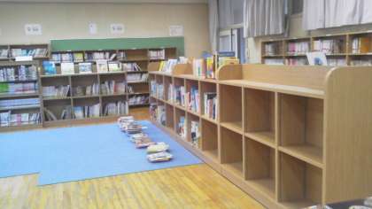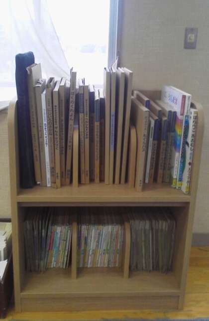 昨年末に、校長戦略予算加配分で購入した新しい書架が全て納入されました。両面の絵本用書架4台と大型絵本用書架1台です。