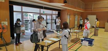 10月4日(日)高倉地域の防災訓練を行いました。今年度はこのような状況ですので、規模を大幅に縮小し、コロナ禍における避難所開設訓練を実施いたしました。