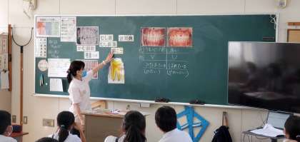 今日の2・3時間目、歯と口の健康教室が行われました。今年は新型コロナウィルスの影響で、例年のように実際に自分の口の中の様子を調べる検査はできませんでしたが、子どもたちは、熱心にお話を聞き、改めて歯の磨き方や噛むことの大切さ等について考えていました。