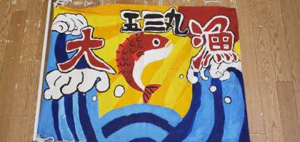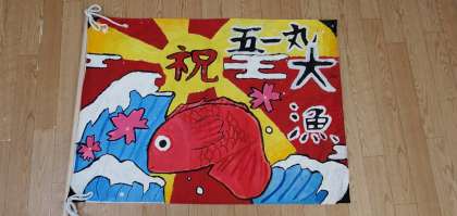 当日は子どもたちの力いっぱいの踊りと共に、この大漁旗が秋空に美しく舞うことでしょう。2週間後がとっても楽しみです!