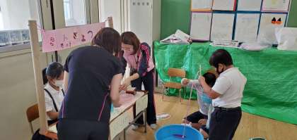 子どもたちは交代でお店番をしたりお客さんになったりして、お祭りを楽しんでいました。