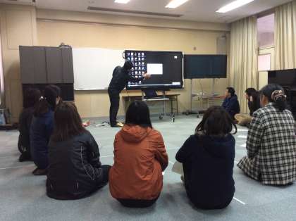 校長経営戦略予算(加算配布)で購入したタッチディスプレイが先週末に納入され、1月19日放課後に使用方法の研修会を行いました。