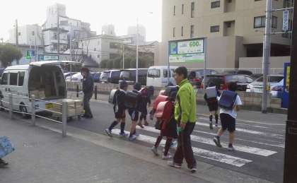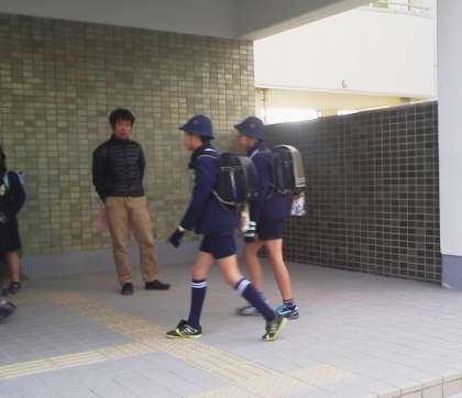 登下校の際も、オレンジ隊の方々や見守ってくださっている方々に元気にあいさつできるよう挑戦しています。