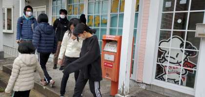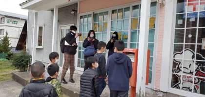 朝の集いの後、昨日の夕方に書いた葉書を出しに行きました。いつ届くかな?