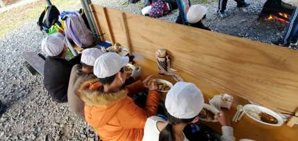 午前11時前、早くできたグループから少し早目の昼食です。お味はいかがですか?
