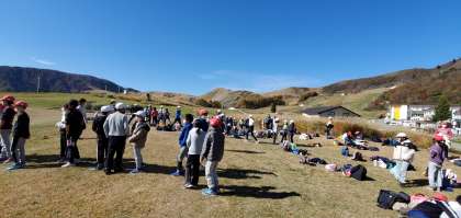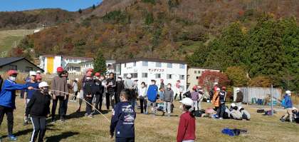 12時を少し過ぎました。がんばって片付けを早く終わらせる事ができたので、宿舎の前の広場で遊んでいます。
