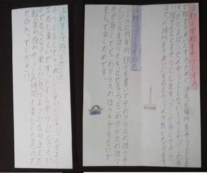 5年生は、国語学習で、「委員会活動について紹介するリーフレットの構成を考えて書く」言語活動を通して、「経験を振り返り、必要な情報を整理して、活動報告を書く力」を伸ばすことができました。4月から委員会活動を経験する4年生を念頭において取り組んだそうです。5年生は、できたリーフレットを今朝、4年生の教室に届けました。4年生は、とても興味深そうに読んでいました。