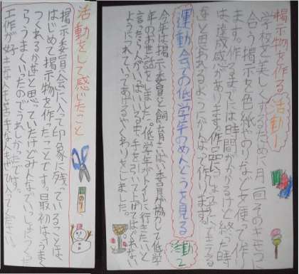 一人一人が、構成、書く内容、文字、挿絵などを工夫し、4年生に委員会活動を紹介し、学習したことを学校生活の充実に活用することができました。