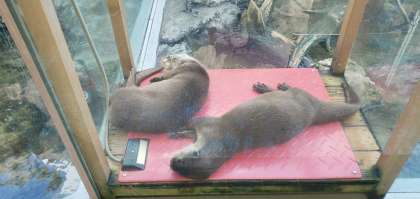 下はカワウソですが、暑さのせいか寝転んだままでした。