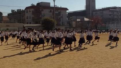 本日より11日金曜日まで1年生3年生5年生が、寒さに負けない身体づくりと、運動の習慣が身につくようにとかけあし週間を行います。15分休みを使って運動場で音楽に合わせて走っていました。