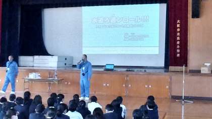 浄水場では、汚水からきれいな水に変えるまでの工程を、DVDを見て学びました。