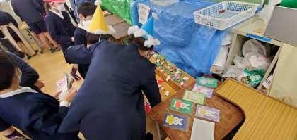 ご覧いただいているのは買い物ゲームの様子です。商品がとても上手に作られていて驚きました。また、高学年がしっかりと低学年をリードできていて確かな成長を感じました。
