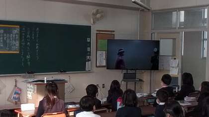 3学期の始業式の後、運営委員会より12日から予定されている「あいさつ週間」に向けて劇をしながら挨拶の大切さを紹介していました。挨拶の練習では精一杯取り組んでいました。