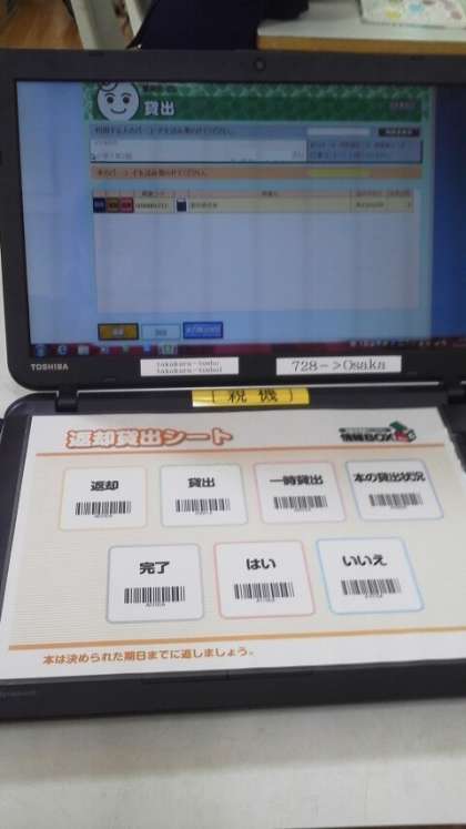 1年生の児童は、操作にもすっかり慣れ、6年生顔負けの動作で貸出や返却作業をしていました。パソコンやバーコードリーダーが興味深くて、本を借りようという気持ちになる児童もいるようです。とにかく、図書室の本を読むきっかけになれば、とってもうれしいです。