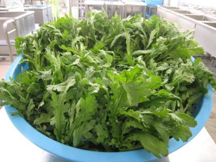 「きくなとはくさいのおひたし」は、彩がよく、きくなのほのかな香りのあるおひたしでした。きくなを学校給食で初使用したのは2007年1月で、今年で14年目になり、12月と1月に使用しています。