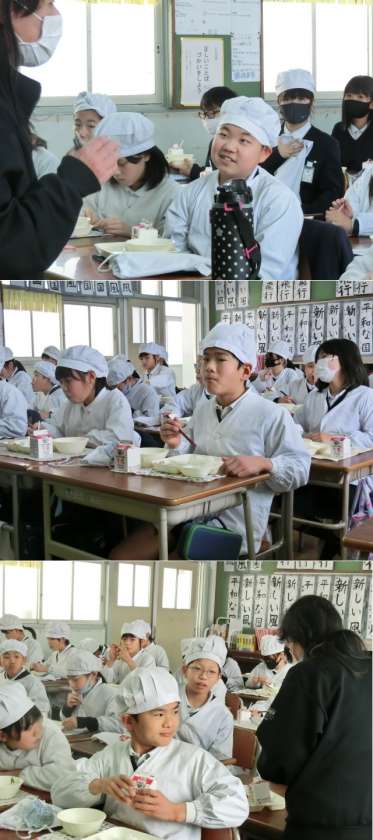 毎日給食をしっかり食べている学級で、地産地消のきくなに感動した5年生の教室で・・・