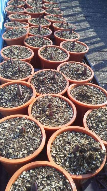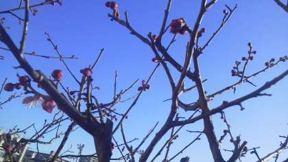 今朝、プール近くの地面に氷がはっているのを見つけました。誰かが見つけて踏んでみたのでしょう、足形のような穴があいていました。氷はお昼頃まで融けずに残っていたので、1年生児童が生活科「冬をみつけよう」でこの氷にさわって大喜びでした。講堂前の紅梅は蕾が膨らみ、一輪花を咲かせています。寒いですが、もうすぐ本格的な春ですね!PTA緑化委員会のみなさんが、新一年生へのプレゼントにしようと育ててくださっているチューリップも芽をだし温かくなるのを待っています。