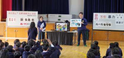 今日の3時間目、中央少年サポートセンターの方を講師にお招きして、非行防止・犯罪被害防止教室が行われました。