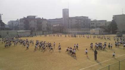 今日も天気に恵まれ、低学年児童は楽しそうに走っています。