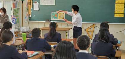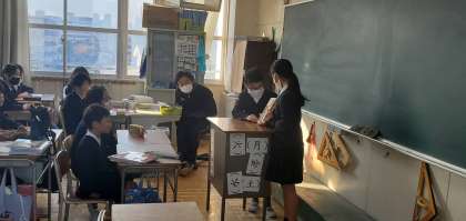 今日は読書週間最終日でした。朝の会の時間には図書委員会の児童がそれぞれの教室で友達に本の読み聞かせをしていました。
