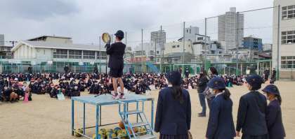今朝の児童集会は、集会委員が何回タンバリンを叩いたか当てるゲームをしました。途中でリズムを変えるなどがんばって工夫してくれていましたが、見ていると回数を当てるよりも叩く方が難しかったようです。(笑)
