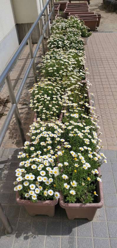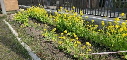 ご覧いただいている写真は、東側花壇の菜の花、玄関右側のプランターに植わっているノースポール、築山のユキヤナギの様子です。3月も半ばに差し掛かり、いよいよ春らしさが増してきました。