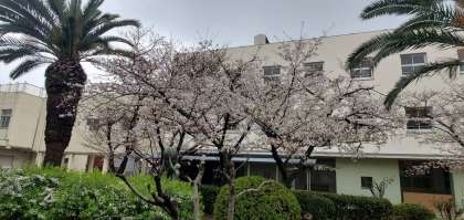 ご覧いただいているのは、中庭の桜です。もう5分咲きといったところでしょうか。今年は3月中に見ごろを終えそうな雰囲気です。