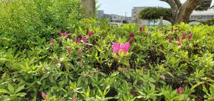 ご覧いただいている写真は、上から玄関横の八重桜、築山のさつき、築山のすぐ横に植わっているキクモモです。
