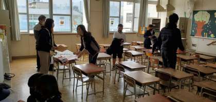 今日の午前中、明日の入学式の準備を新6年生が手伝ってくれました。1年生の教室や廊下、また講堂等の掃除や飾りつけ、椅子並べなど本当に熱心に取り組んでくれました。