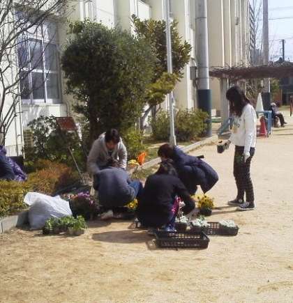 PTA花壇春の植え込みをしていただきました!