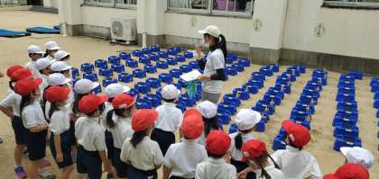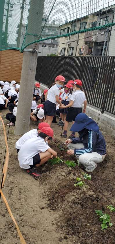 上の2枚は1年生が自分の植木鉢と学年の花壇にアサガオの種を植えているところです。また下の写真は、2年生がサツマイモの苗を植えているところです。みんなでこれから声を掛け合いながらしっかりとお水やりなどのお世話をしてくださいね。