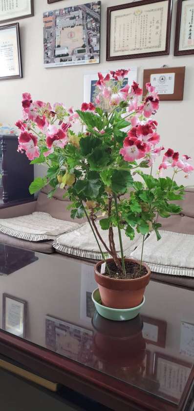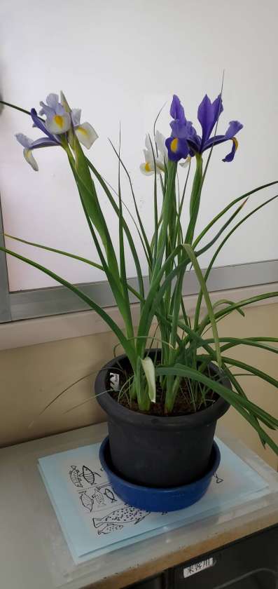 今年度も高倉地域の傍島様が、皆さんに見てもらってほしいと四季折々の花を学校に届けてくださっています。ご覧いただいている花は、左から順にアイリス、シラー、ゼラニウムです。美しい花を見ていると心が和みます。いつも本当にありがとうございます。