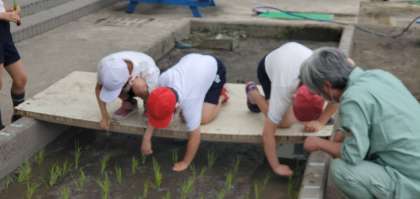 後半は、苗を植えているのか泥遊びをしているのか分からないような子もいましたが、楽しそうに活動する姿に、見ているこちらの気持ちも和みました。たくさんのお米が実るといいですね。