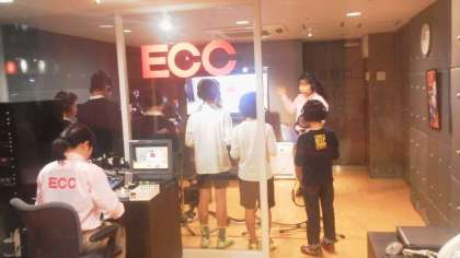 英語を使ってアニメにセリフを付けています。声優体験です。