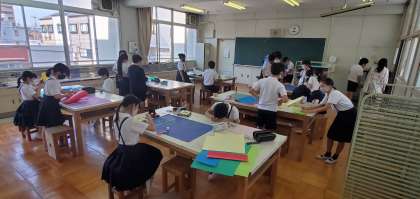 運営委員会ではこの1年の高倉小学校の目標を話し合い、掲示員会では早速カラフルな掲示物を作り始めていました。また集会委員会では、毎週水曜日の朝に縦割り班で行う活動について考えていました。