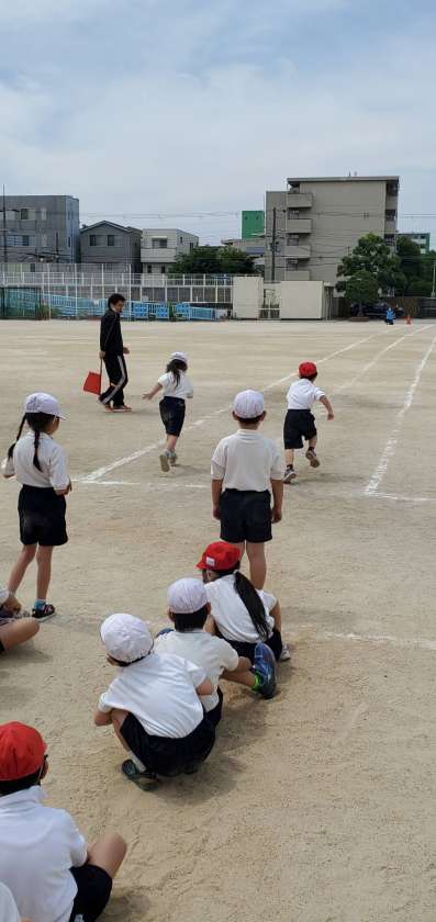 今日は1年生が50m走を行いました。教頭先生がスターターとしてお手伝い。がんばって走るお友達を応援する姿もとっても可愛らしかったです。