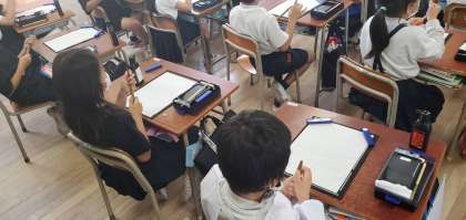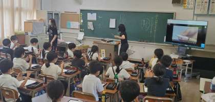 今日の6時間目、3年生が初めての毛筆書写について勉強している様子です。映像を見ながら気をつける点などについて確認し、実際に筆で文字を書きました。