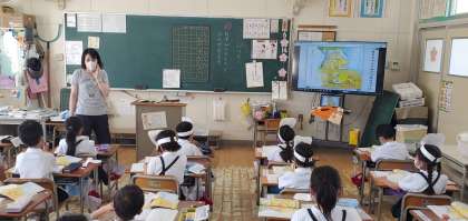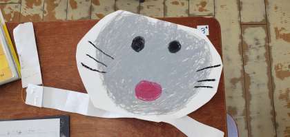 1年生がねずみの気持ちを考えながら音読する勉強をしている様子です。自分で作ったねずみのお面をかぶって一生懸命発表していました。音読もだんだん上手になってきています。