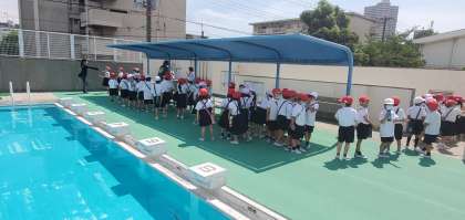 昨年度は高学年のみの水泳指導なりましたが、今年度は低・中学年も入水することができるようになりました。感染防止に留意しながら、少しでも水に親しんでほしいと思っています。
