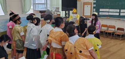 今日の2時間目、なかよし集会がありました。今回は「十二支の動物」の劇と、それぞれが披露したい特技等について発表しました。