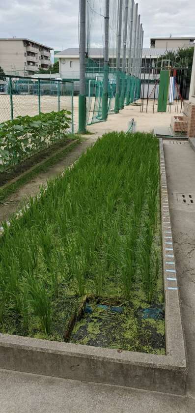 また田んぼの稲も大きく伸び、ウキクサが一面を覆っています。先週は「カブトエビがいたよ!」と教えに来てくれる子もいました。